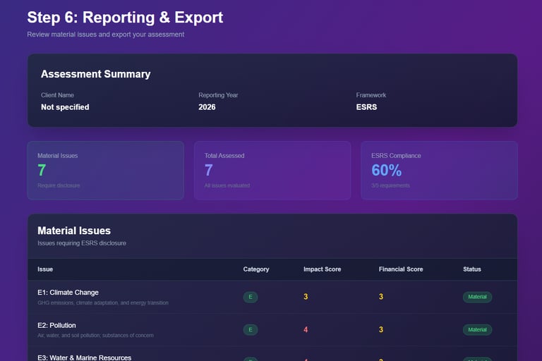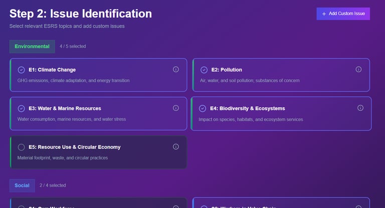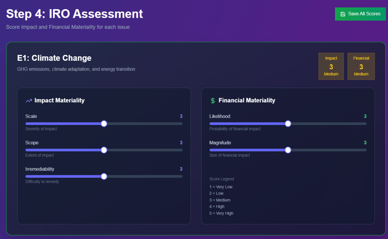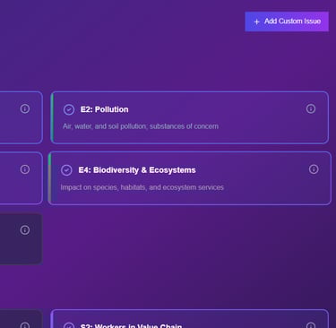 Our integrated library and automated workflows identify Impacts, Risks, and Opportunities (IROs)
